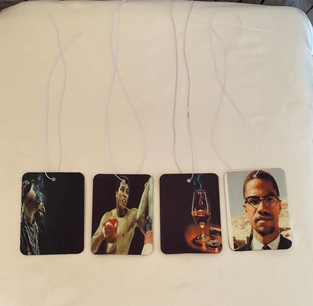 Customize personalize car air freshener with free vent clip over 50 different sent smells last for over 4 weeks Cucumber-melon pear berry ,Fairytales and Roses , galactic skies Black ice, pear berry,Relaxing ,sweet pea,cherry blossom,Black cherry,Black Cherry,Fruity Fusion,Levindale Bloom,Crisp cotton ,coco butter , coconut citrus,Fresh mango,Gardenias,Tobacco and Bayleaf,Hickory and suede, bonfire, backwood,Pearberry, relaxing, sweet pea, Cherry blossom,Black cherry,Fruityfusion, lavender bloom, crispy cotton, Cocoa butter evergreen forest, pink petals,Daisy chain, sandalwood vanilla,Rosehip Jasmine, Drakkar,Jasmine dreams, tropical ,punch, pink Peony, Bergamot Black tea,White lily and aloe,Patchouli, frankincense and myrrh,Baby power,Pineapple,Vanilla bean, Comes with free car vent clip!!!!!! The freshener are made with sturdy material smells last for over a month send design in a message 3.75inches 2.75 width weight.35 4 inches .x5 width made with thick hard felt cloth pack and made with care in the USA message me with details!!!! Send me a PNG file or I can make a file for a fee